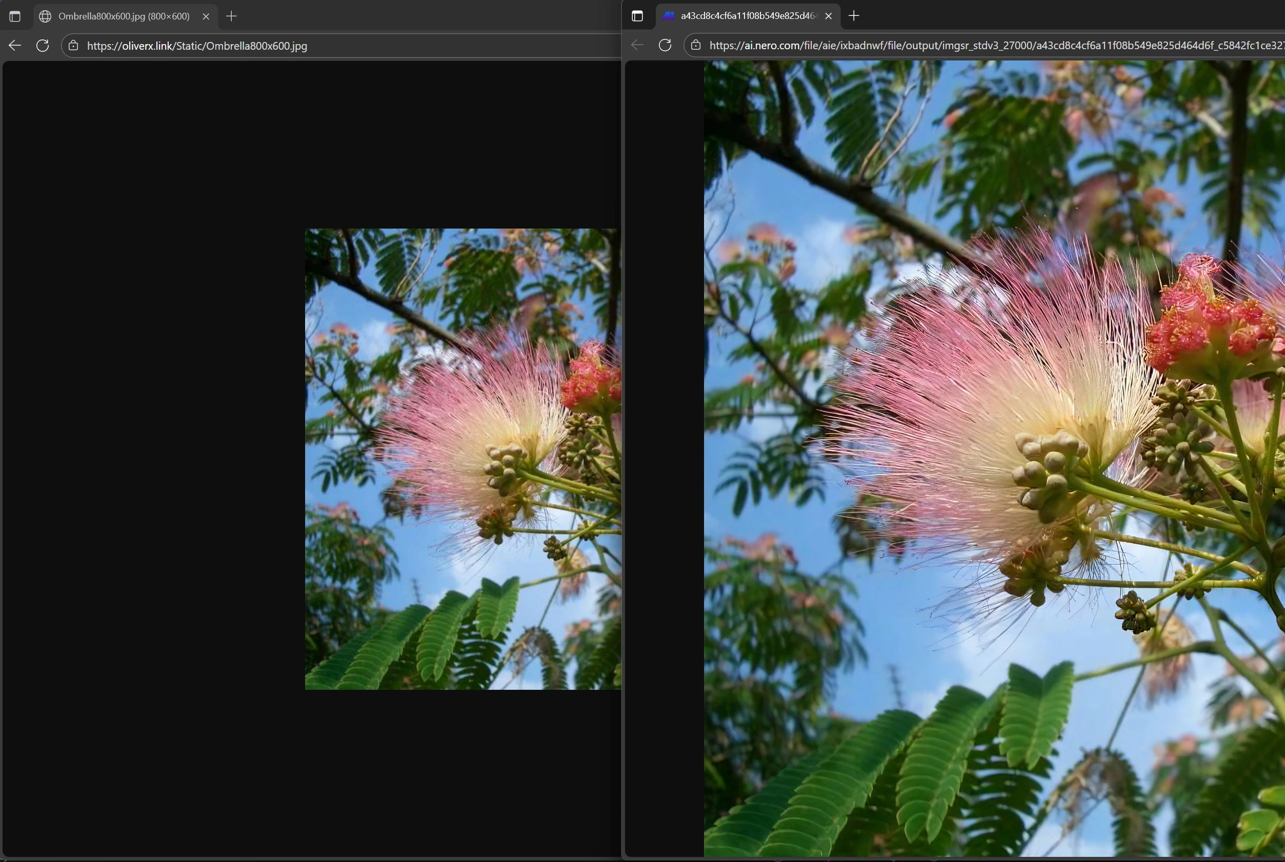 As a final step the flow will open your web browser and display the original image as well as the upscaled image for you to compare.
