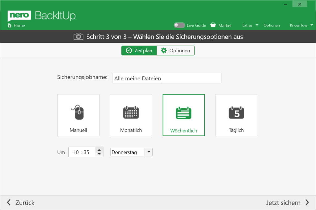 3. Wählen Sie die Sicherungsoptionen aus - Wir häufig ein Backup gemacht werden soll, ob es verschlüsselt und komprimiert werden soll. Schon startet die Sicherung und Ihre Daten sind gut aufgehoben.