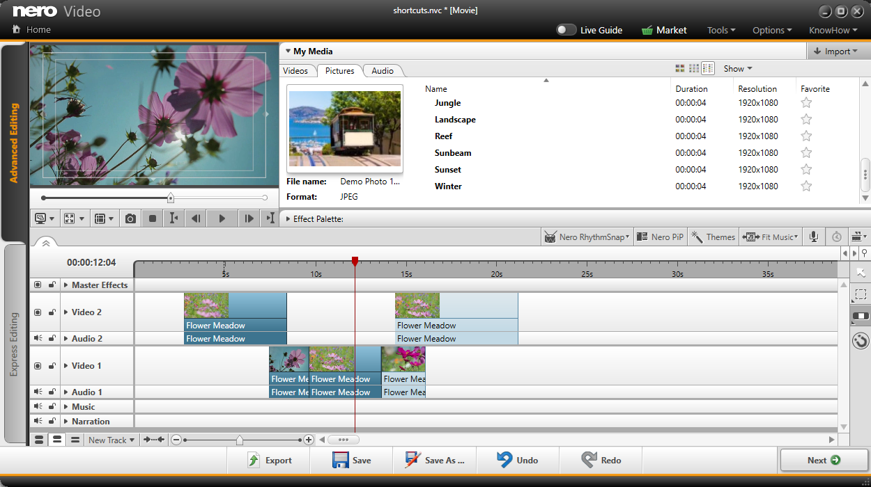 Edit faster - Nero Video shortcuts