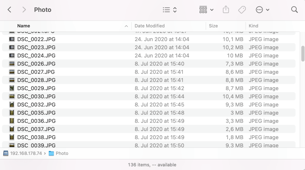 Aufgrund von iPhone/iOS Sicherheitsmechanismen werden die Foto/Video-Dateien erst einmal in der WiFi+Transfer App gespeichert. Von dort können sie dann ganz einfach in das Fotoalbum des iPhones verschoben werden. Dort erscheinen sie dann in der Zeitleiste und im Album "Aktuell".