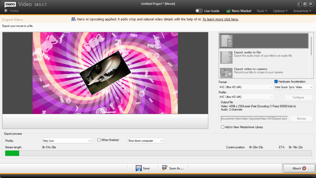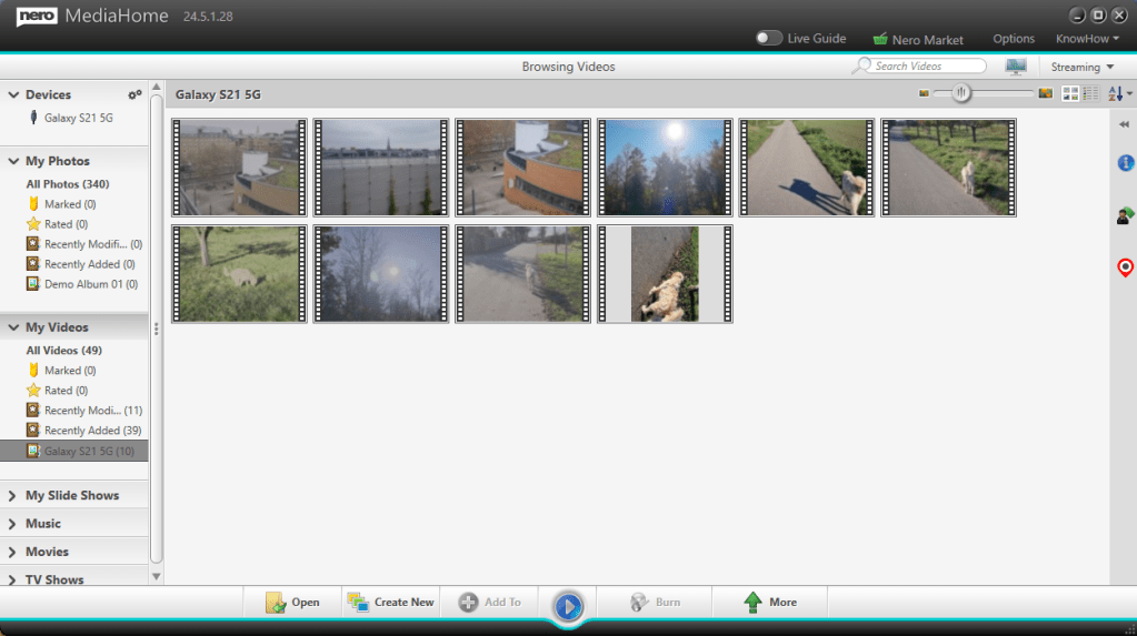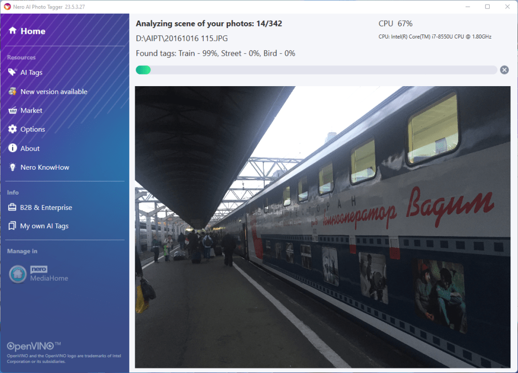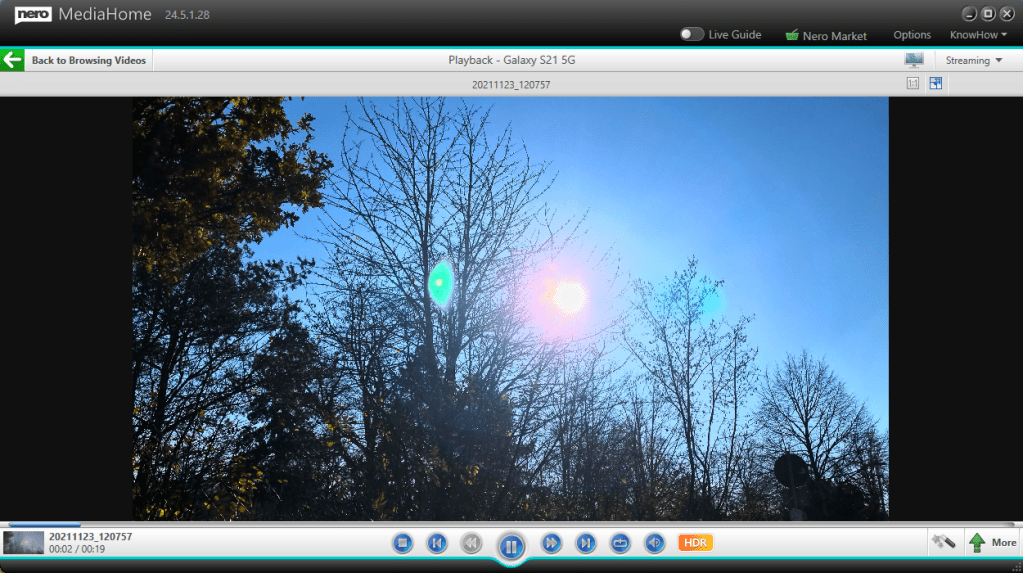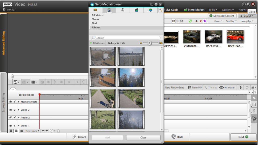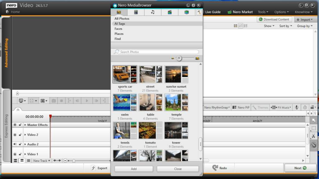 Preview and import of 8K HEVC and 4K HDR videos and high-megapixel photos from camera e.g.Samsung Galaxy S21 5GPlayback of 8K HEVC and 4K HDR videosScene detection of the imported photos via artificial intelligencePresentation of the AI detected scenes inside the video editing module for importPresentation of the 8K HEVC and 4K HDR videos inside the video editing module for importMulti-track editing in 8K, AI tags visible inside the softwareExport with applied AI Video Upscaling