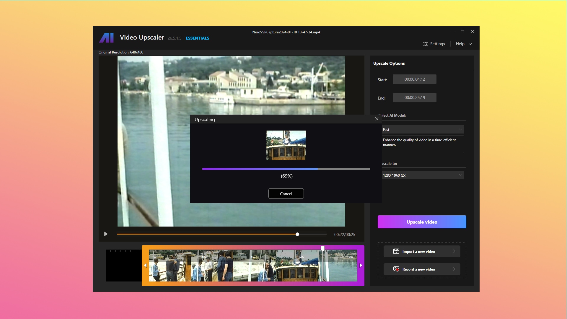 3. Hit "Upscale" to apply AI to your video