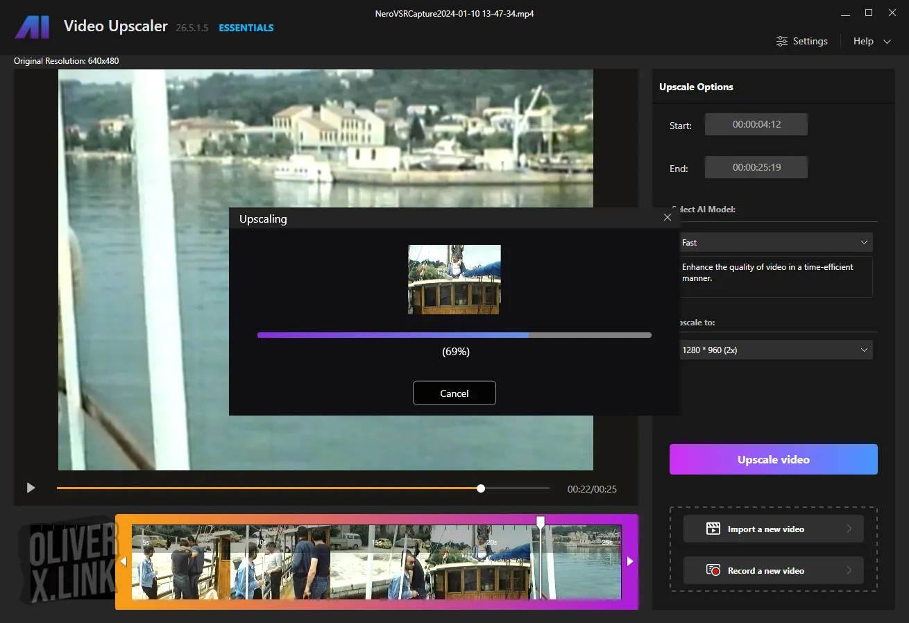 Nero AI Video Upscaler Essentials will process the video for you automatically and will present you with a video file that will blow you away when finished. It makes use of your NVIDIA graphics card to accelerate the process to maximum speed.