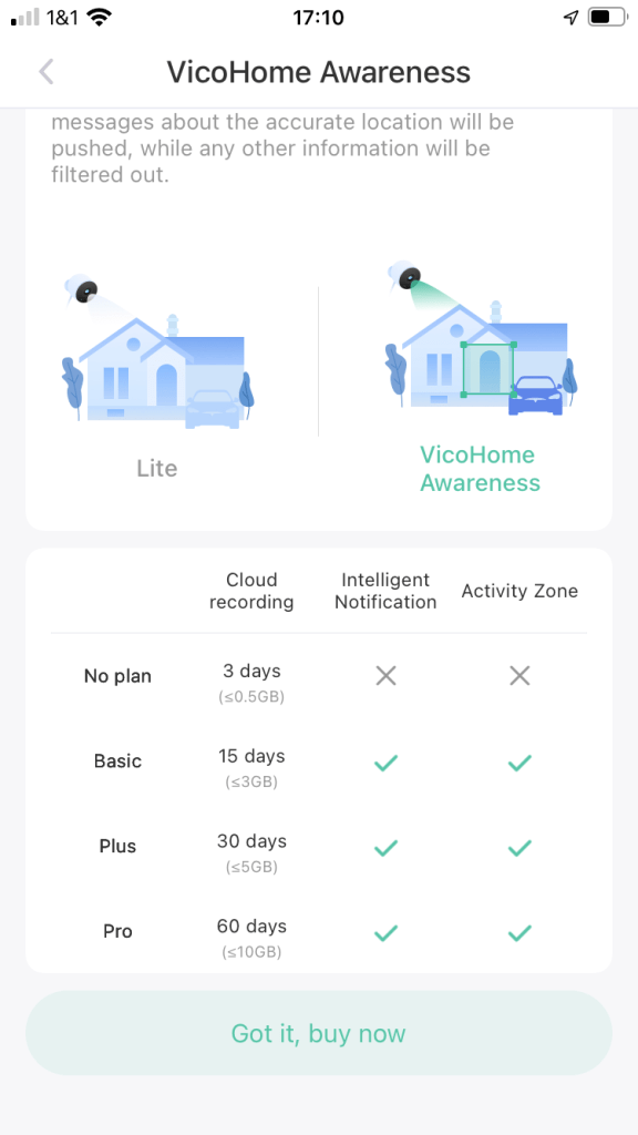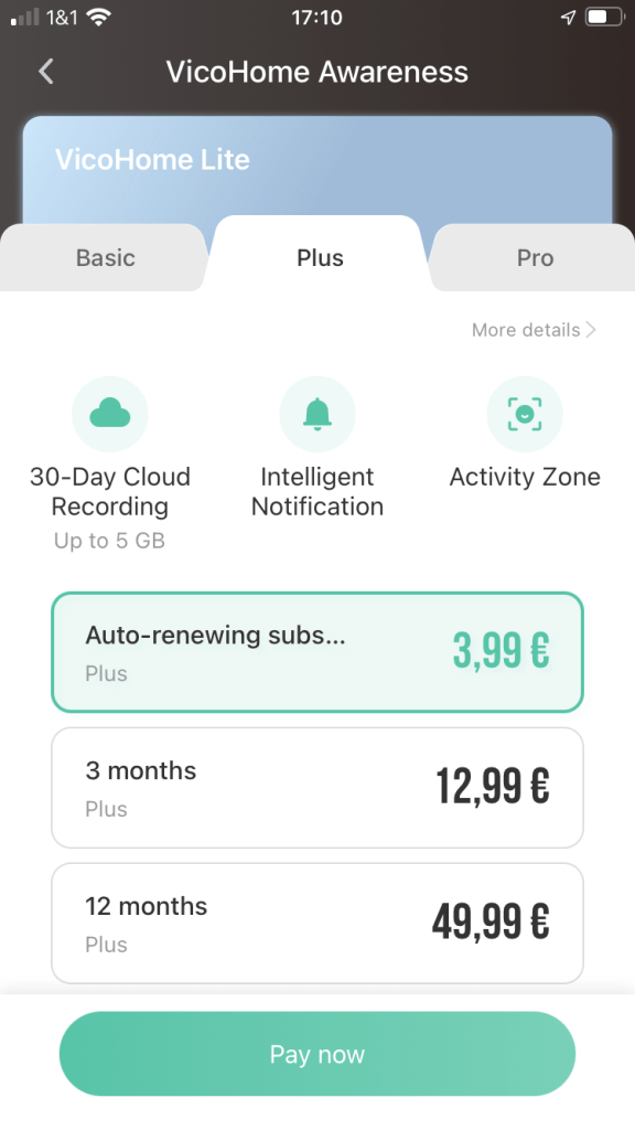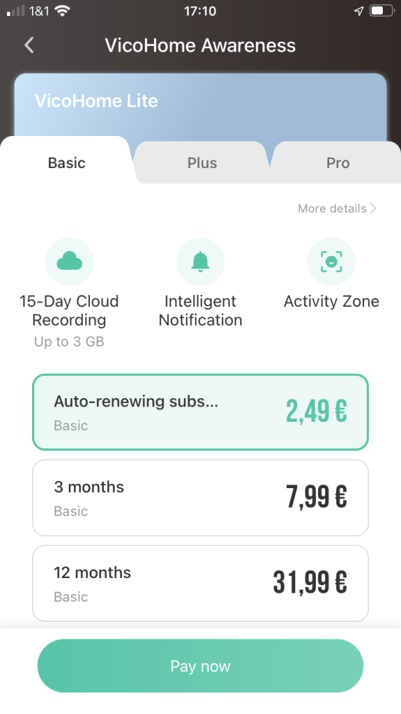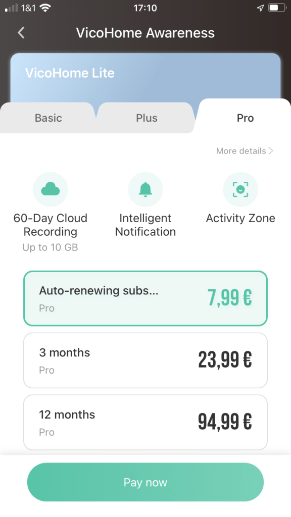 | VicoHome / rockhome / Uniarch Life | 0 € 3 days | 31,99 € 15 days content detection | 49,99 € 30 days content detection | 94,99 € 60 days content detection |