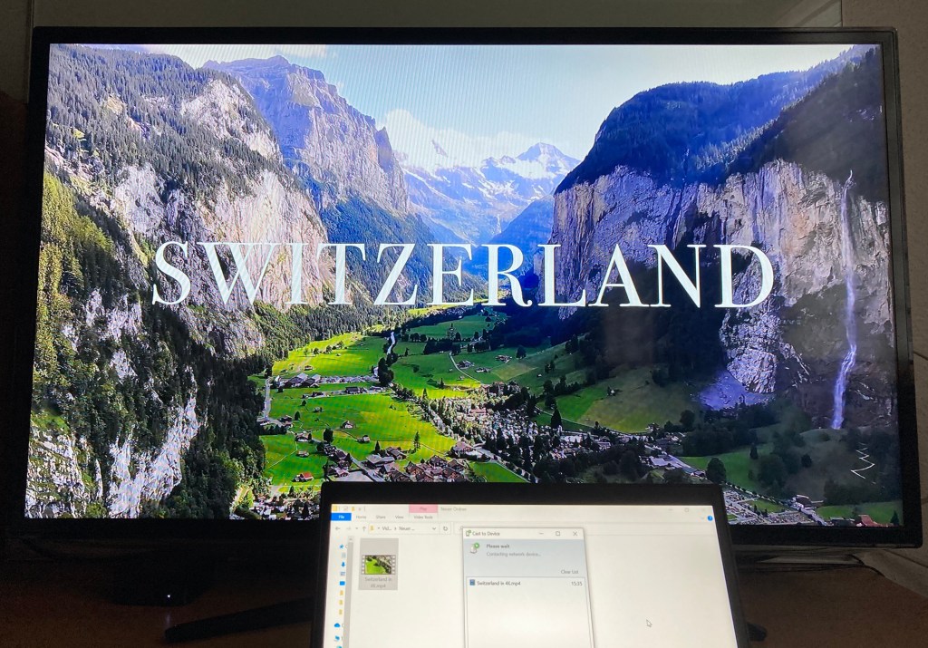 On your Windows PC right-click on any Mp3, Mp4 or JPG file and select "Cast to device". Select the entry that starts with the name of your Apple TV followed by "Nero Receiver". That's it. Enjoy.